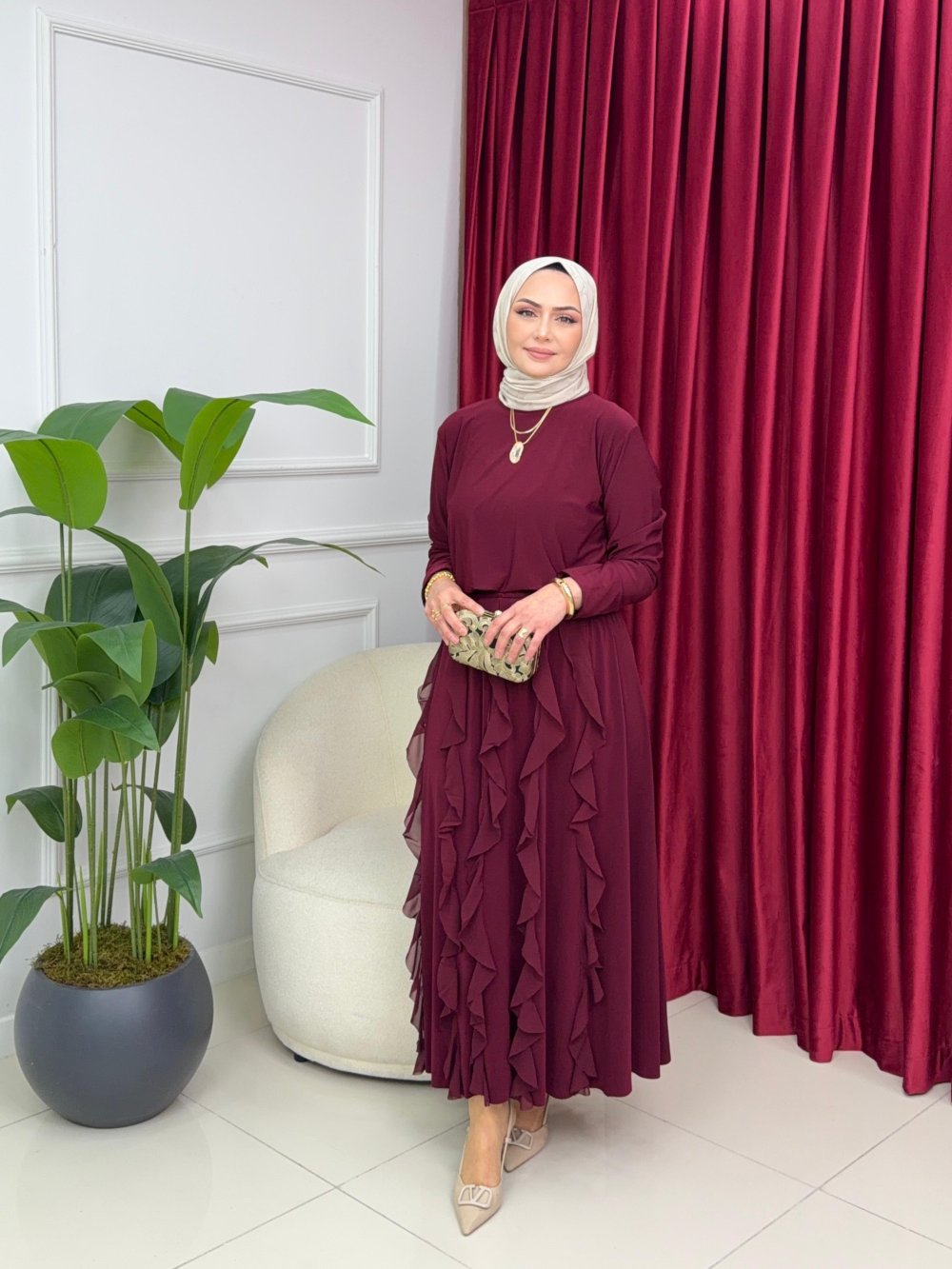 ALAZ ETEKLİ TAKIM - BORDO Bordo