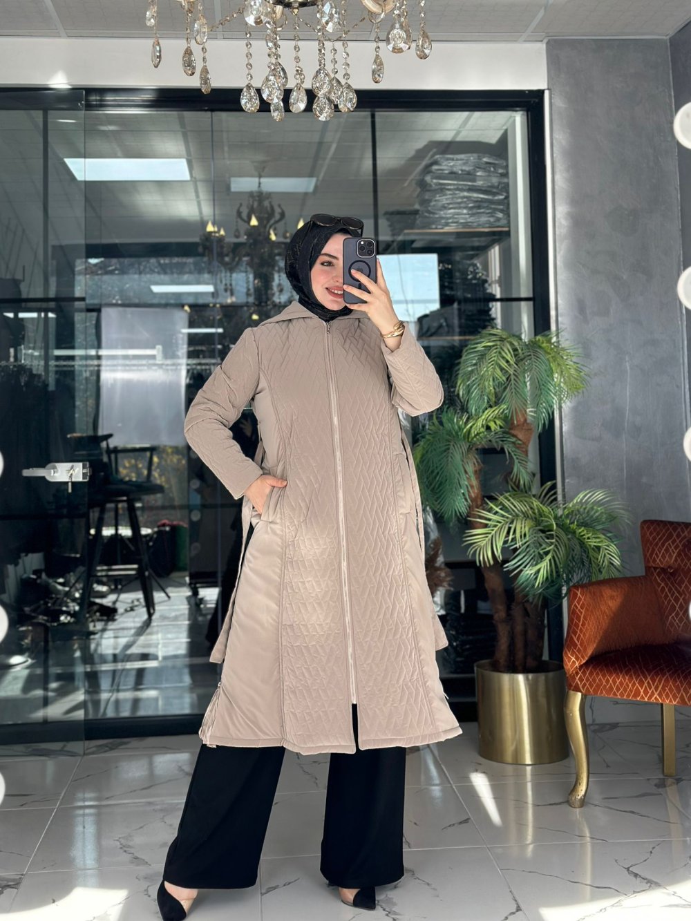 Kumaşı kapitone mont kumaşıdır. Önü fermuarlıdır. Kapüşonu çıkmaz.