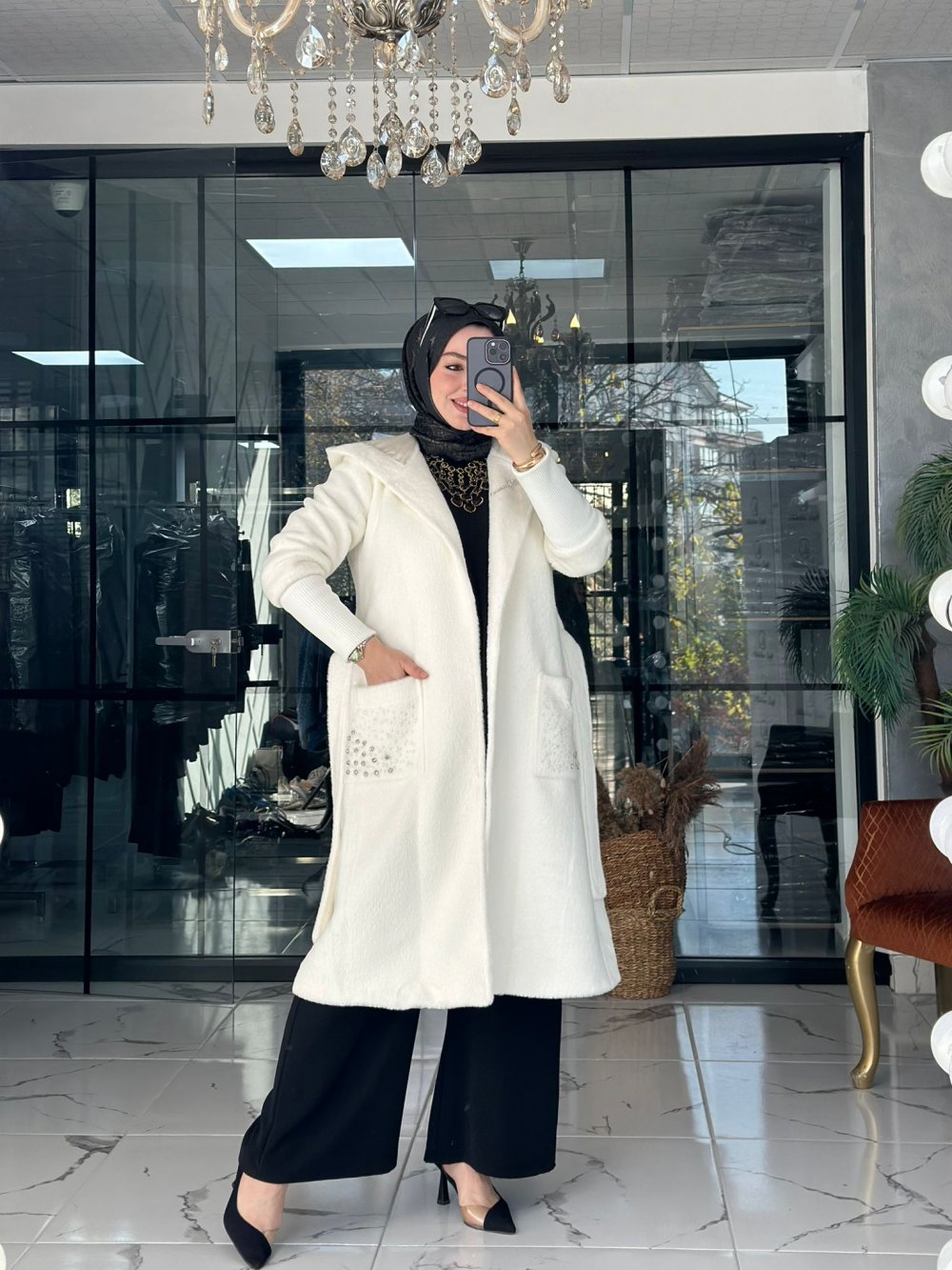 Kumaşı angora kumaştır. Kol ağızı ribanalı,Kapşonlu,kuşaklıdır