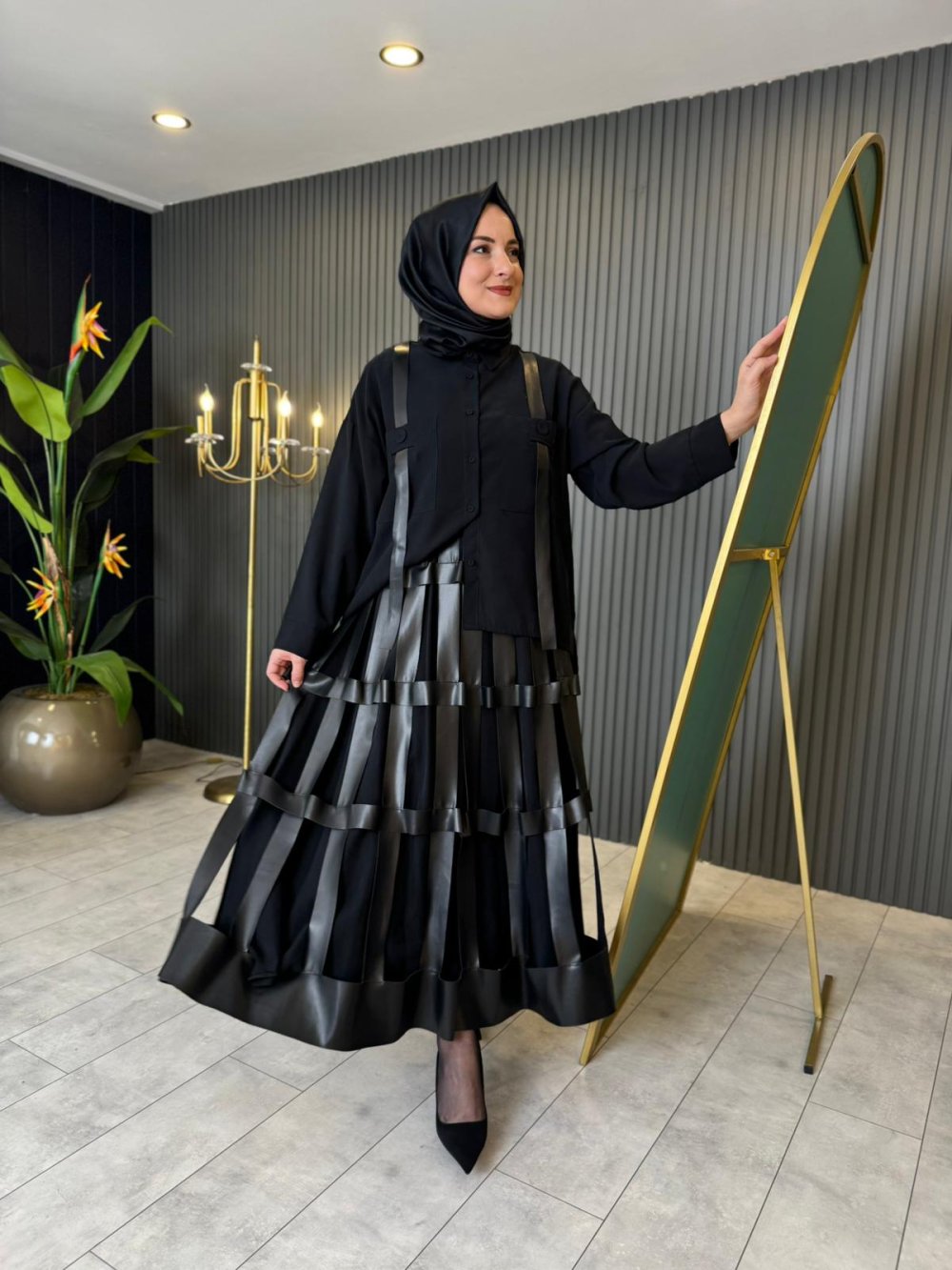 — Tensel ve Deri kumaştır. Etek beli lastiklidir.