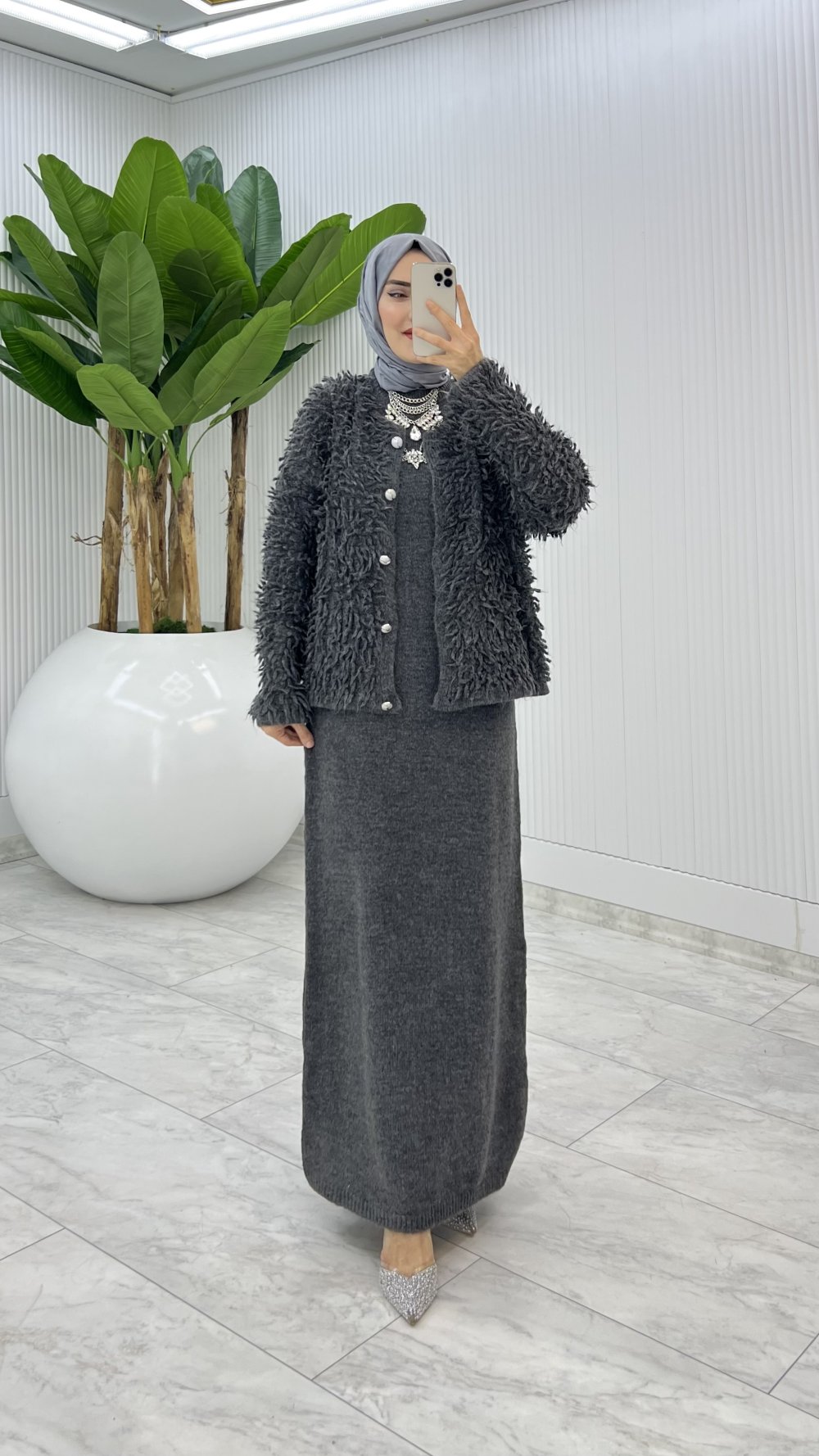 Antrasit Başak Triko Takım Tesettür Giyim