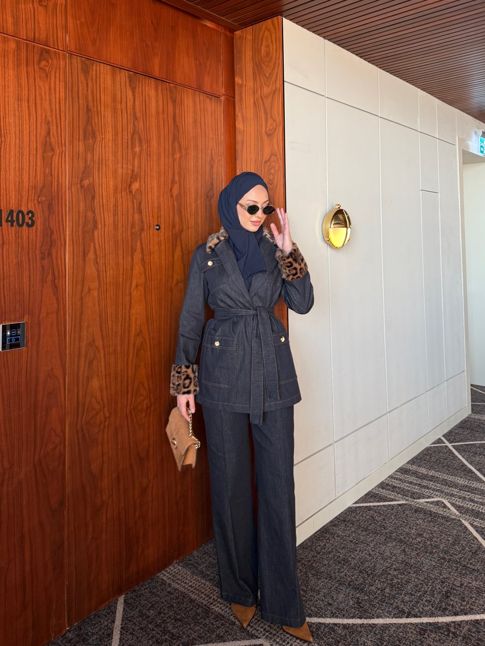 Ceket Kol Ucu Leopar Desenli Kürk Detaylıdır