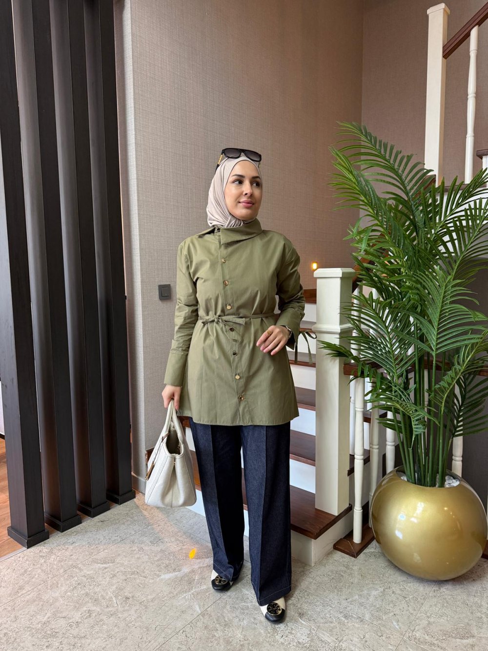 Asimetrik Yaka Gömlek Haki