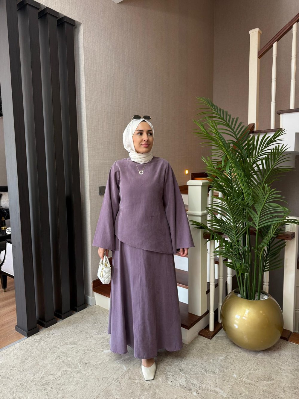 Etek boy 100 cm’dir. Yandan fermuarlı, önü kemerli ve arkadan lastiklidir.