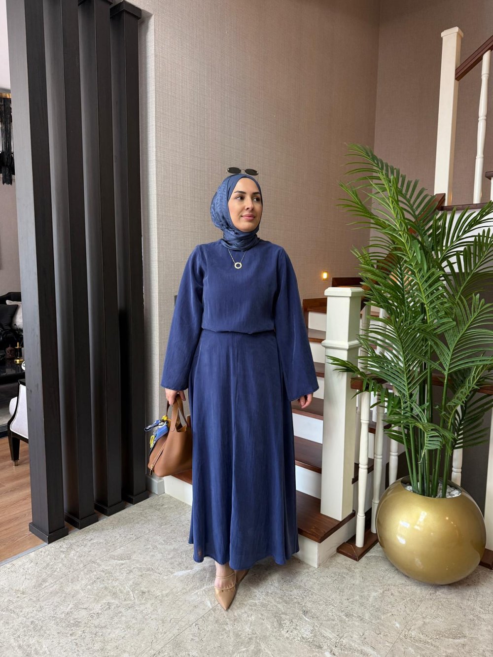 Etek boy 100 cm’dir. Yandan fermuarlı, önü kemerli ve arkadan lastiklidir.