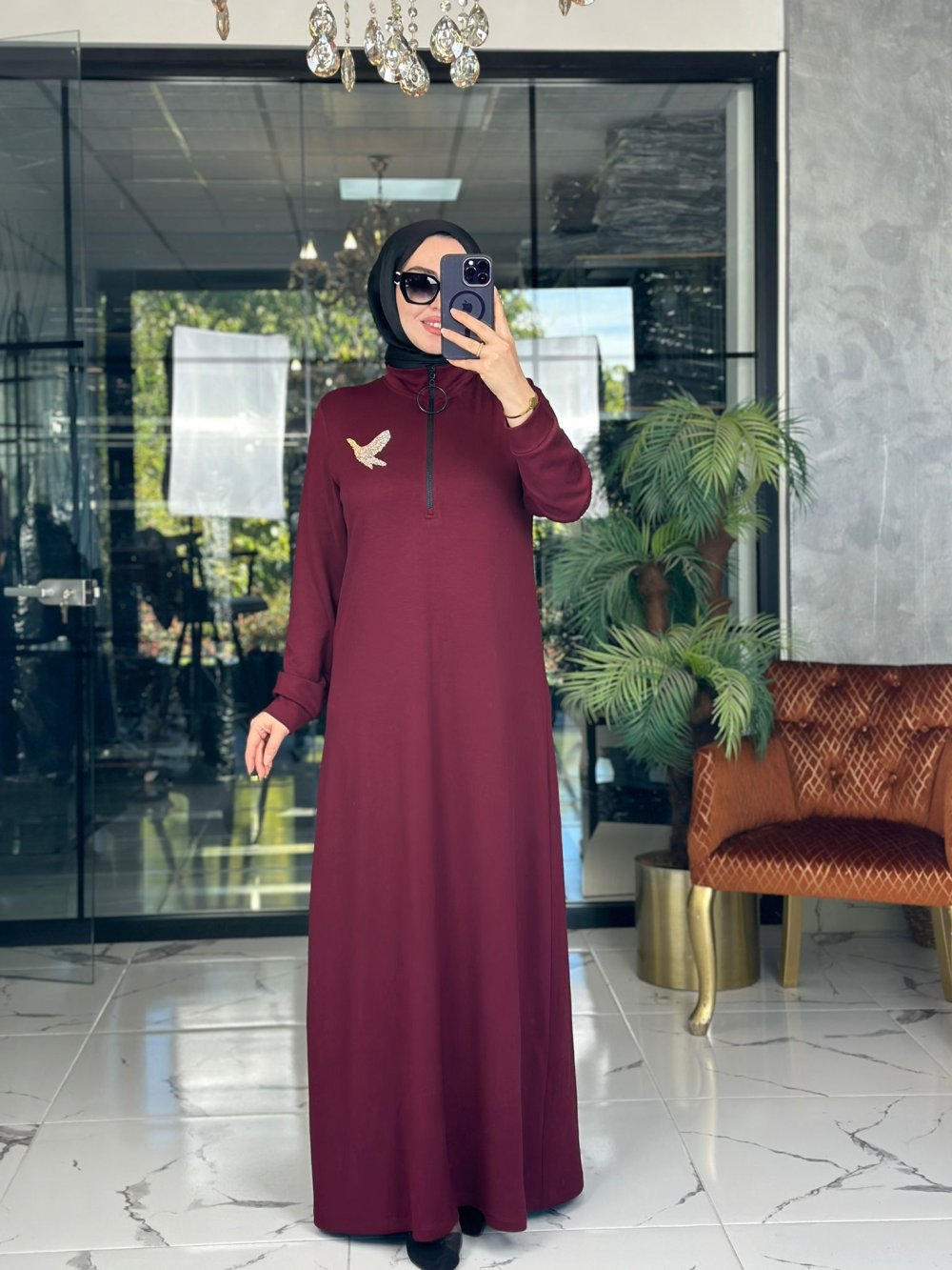 Kumaşı oyshodur. Önü yarım fermuarlıdır.