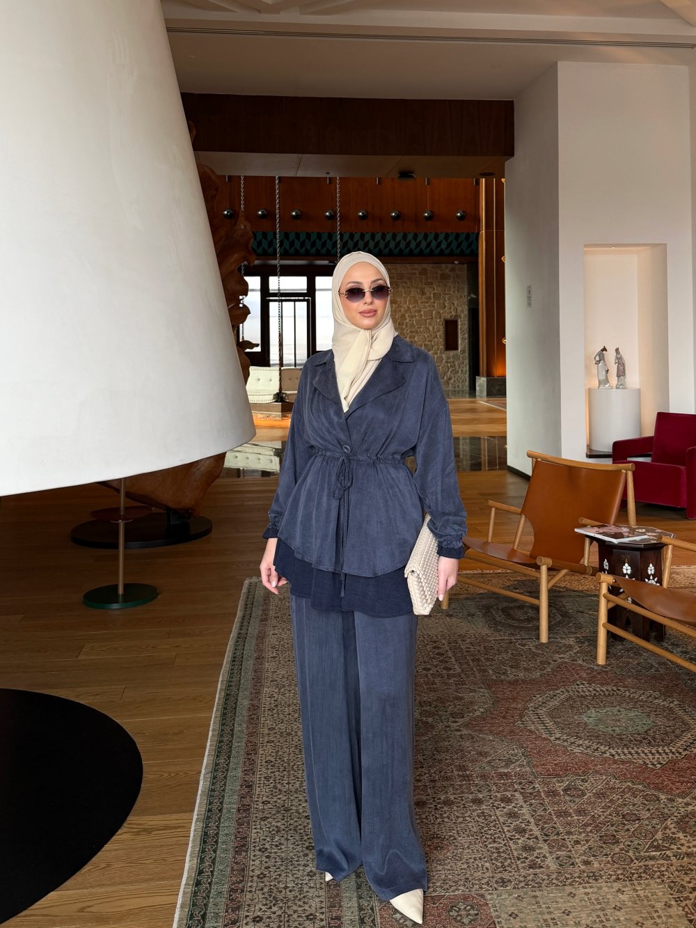 Takım Pantolon Geniş Paça Formundadır.