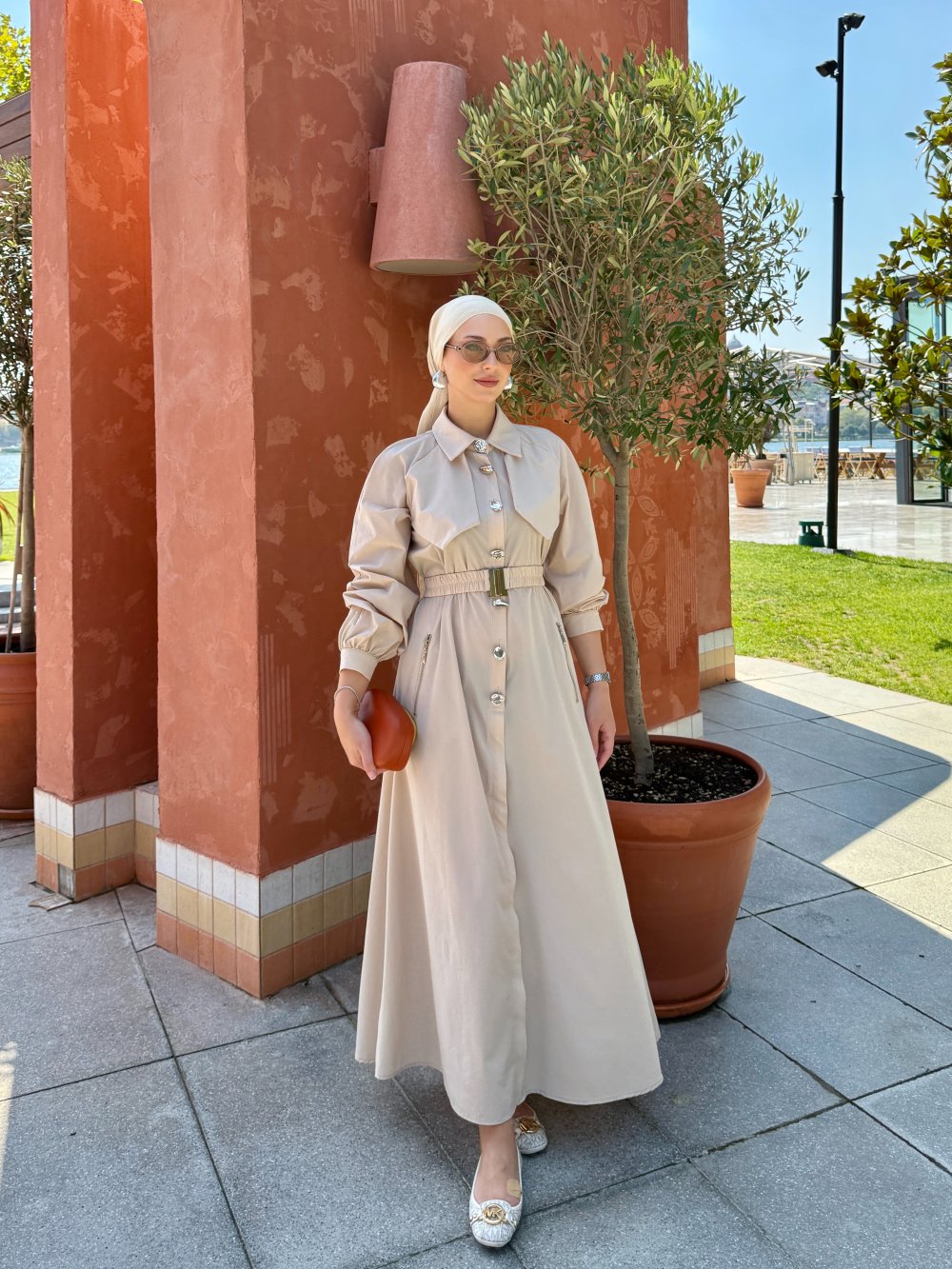 Berna Trenç Elbise Bej