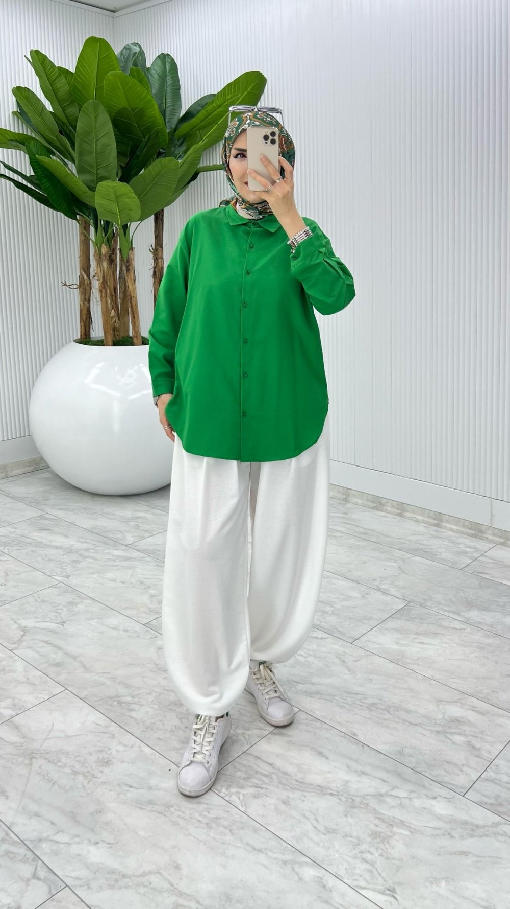 Beyaz Cepli Şalvar Tesettür Giyim