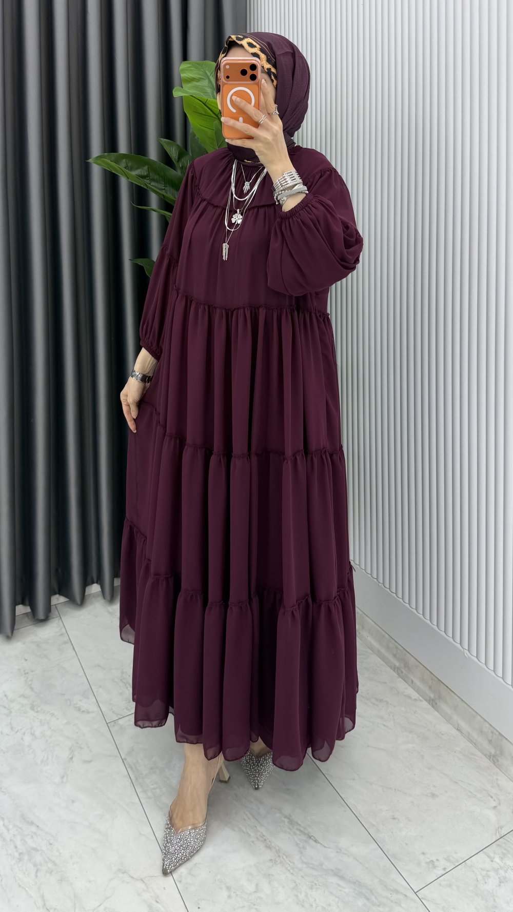 Bordo Güzide Elbise Tesettür Giyim