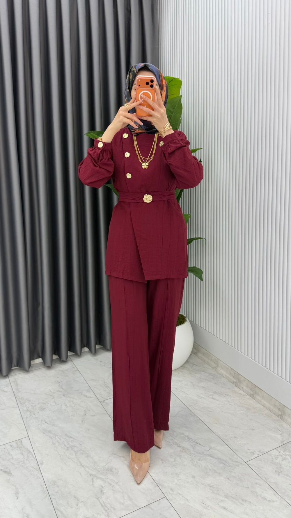 Bordo Premium Kemerli Gözde Takım Tesettür Giyim