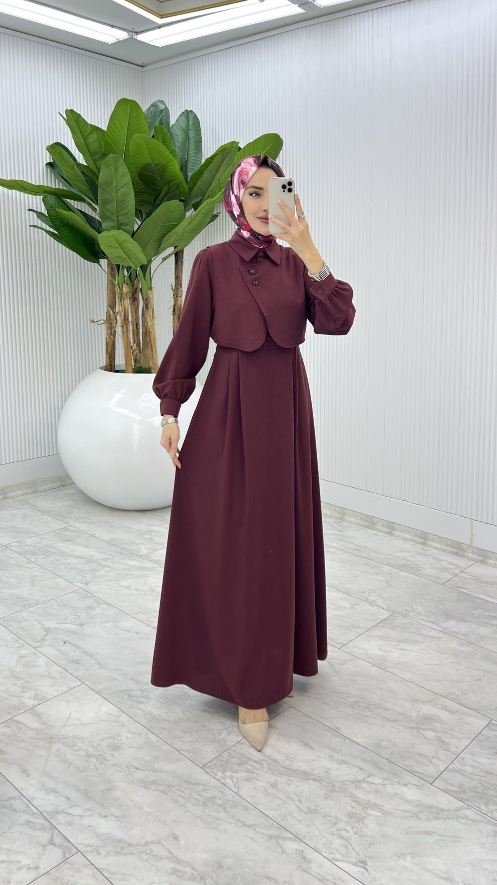 Bordo Sevgi Yelekli Elbise Takım Tesettür Giyim