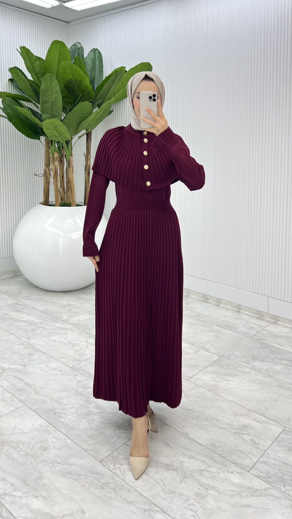 Bordo Sümeyye İkili Triko Takım Tesettür Giyim