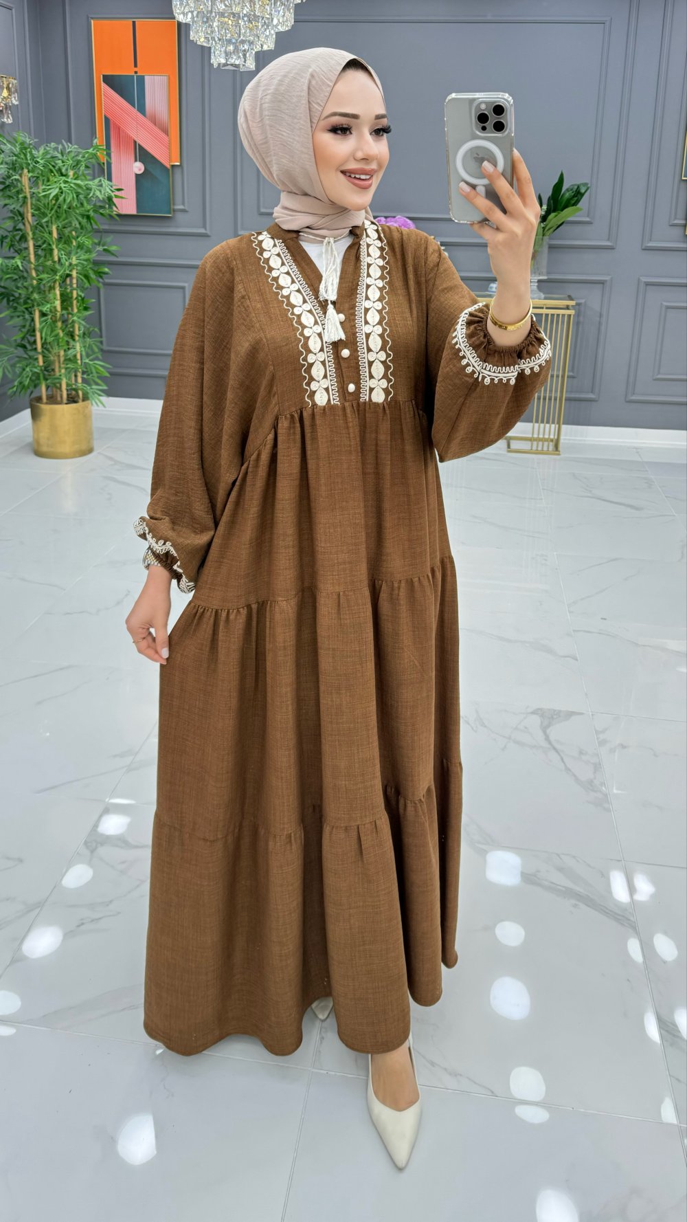 BTK CAVİDE ELBİSE 6569 KAHVERENGİ
