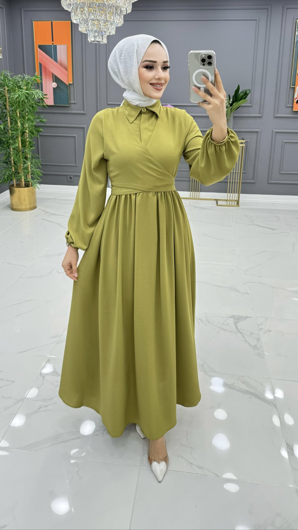 ELBİSE ÖNDEN CAPRAZ ARKADAN BAĞLAMA DETAYLIDIR.