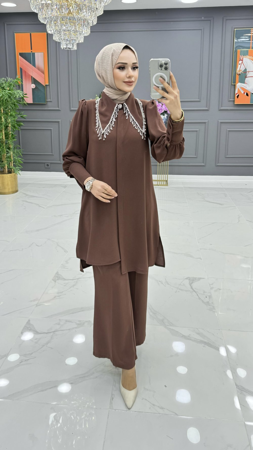TUNİK YAKA SU YOLU TAŞ DETAYLIDIR.