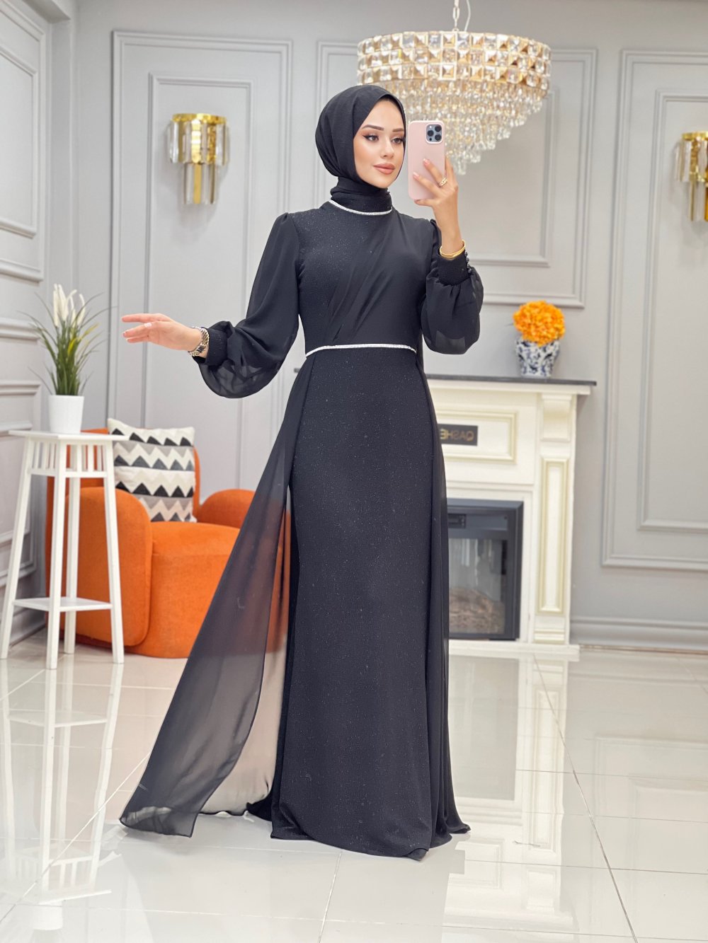 abiye ön ve arka şifon detaylıdır