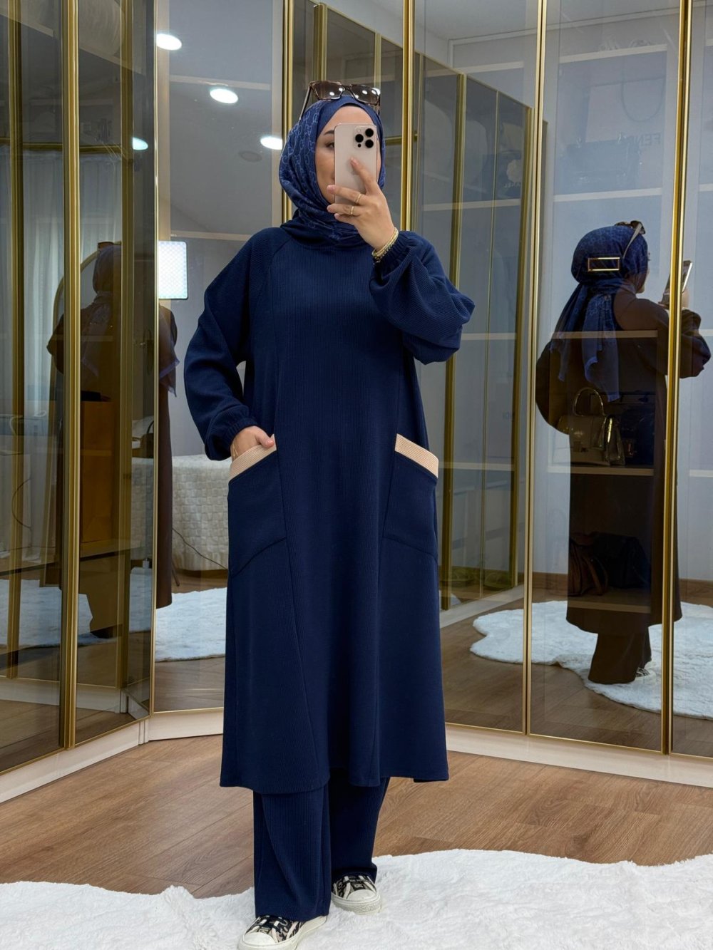 Burgu Kumaş Garnili Takım Lacivert
