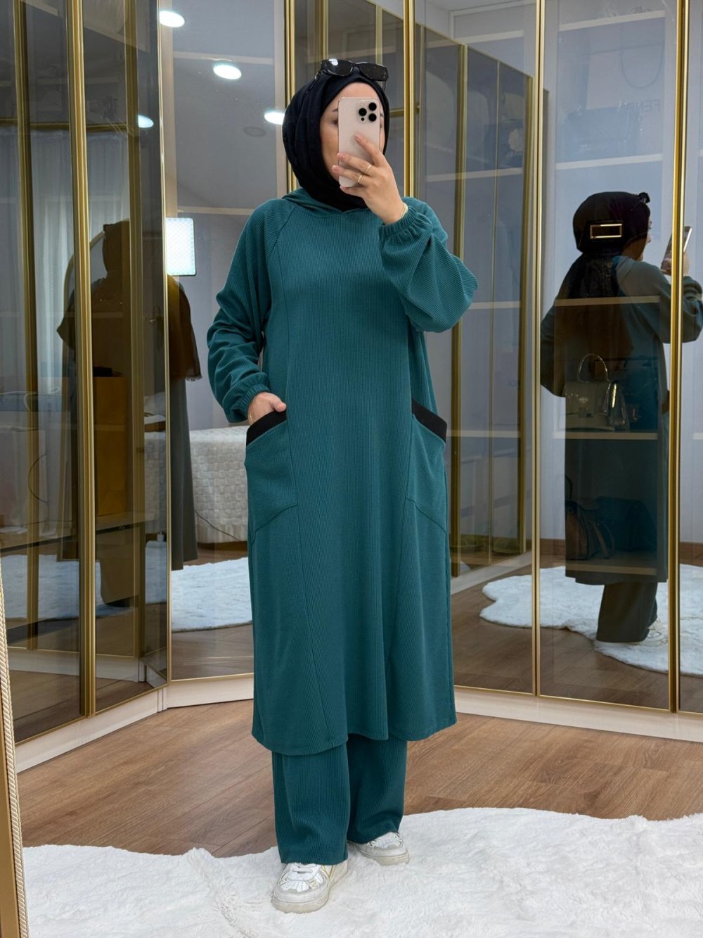Burgu Kumaş Garnili Takım Petrol Yeşili