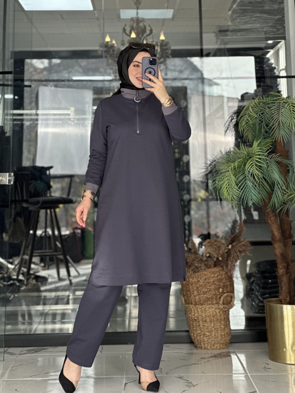 Kumaşı pamuklu iki ipliktir. Pantolon beli lastiklidir. Rahat kalıptır.
