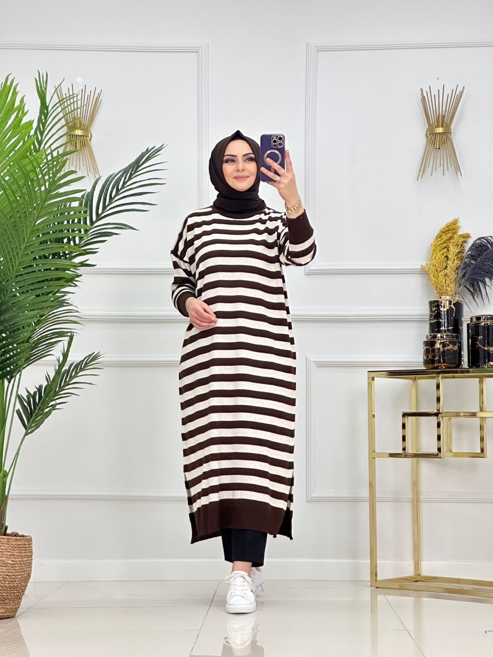 CANSEL ÇİZGİLİ TRİKO TUNİK-ACI KAHVE Acı Kahve
