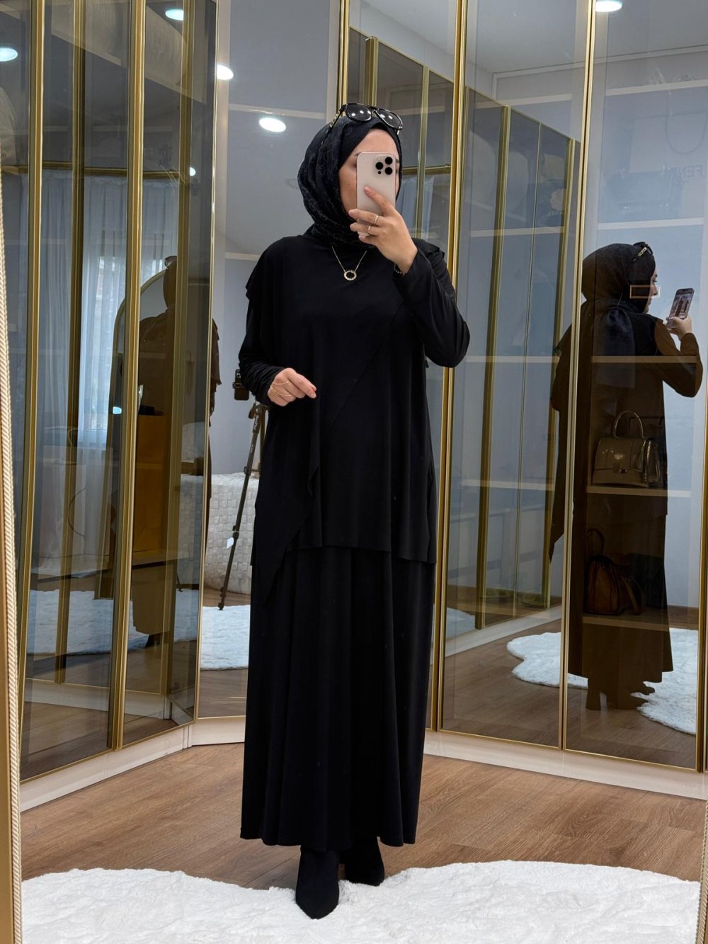 Çapraz Şal Detaylı Tilda Kumaş Takım Siyah