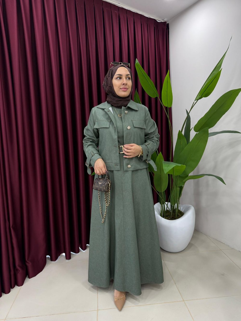 Elbise boy 142 cm’dir. Arkadan fermuarlıdır, seyyar kuşağı mevcuttur.