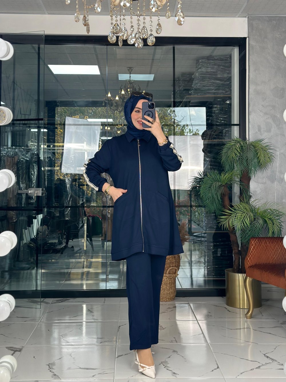Kumaşı esnek kristal kumaştır. Pantolon beli lastiklidir. Önü hırkalıdır.