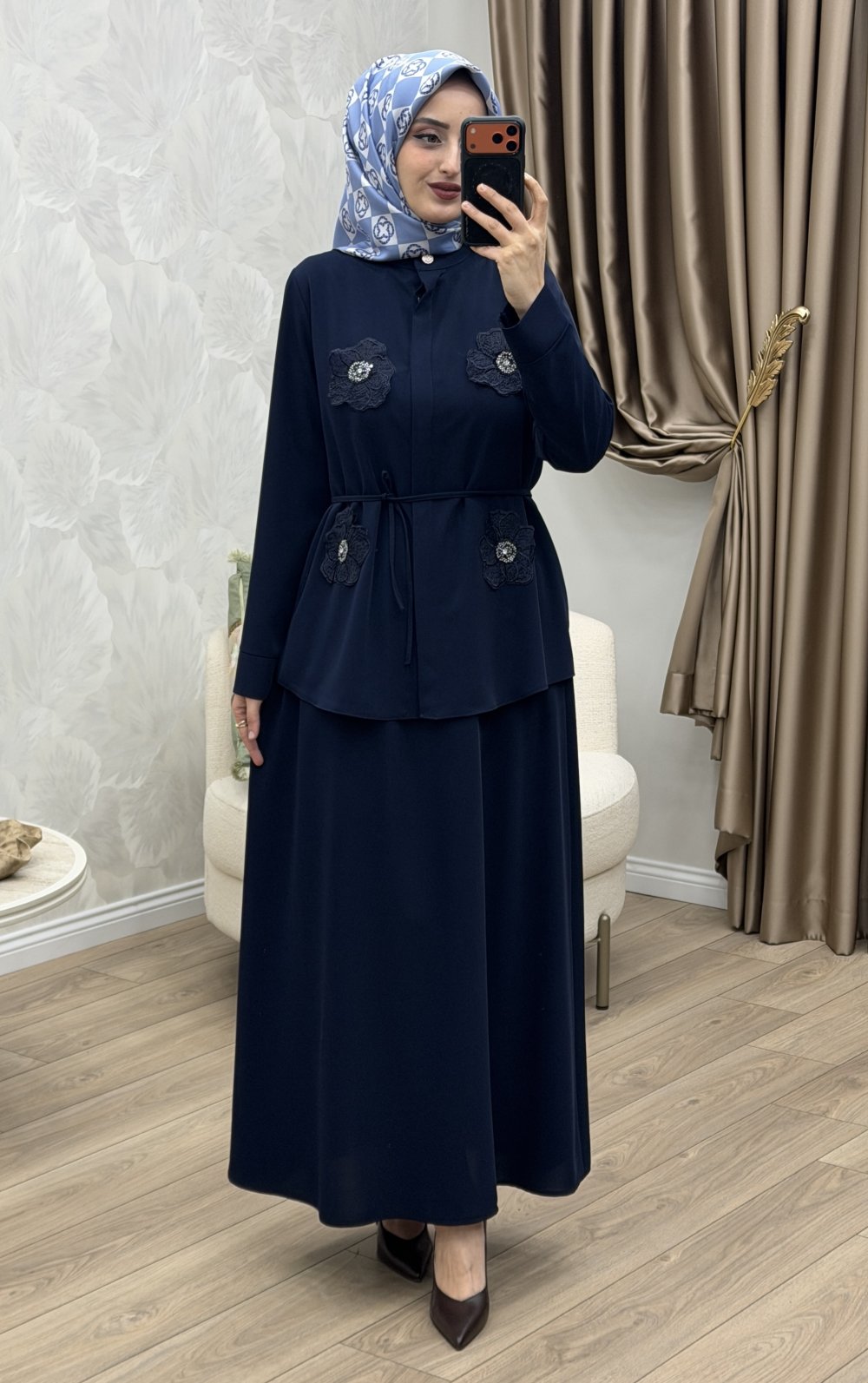 Çiçek Etek Takım,hem iş hem de günlük hayatınızda rahatlıkla tercih edebileceğiniz çok yönlü bir parçadır. Şıklığı konforla buluşturan bu tasarım, sezonun en gözde modellerinden biri olacak