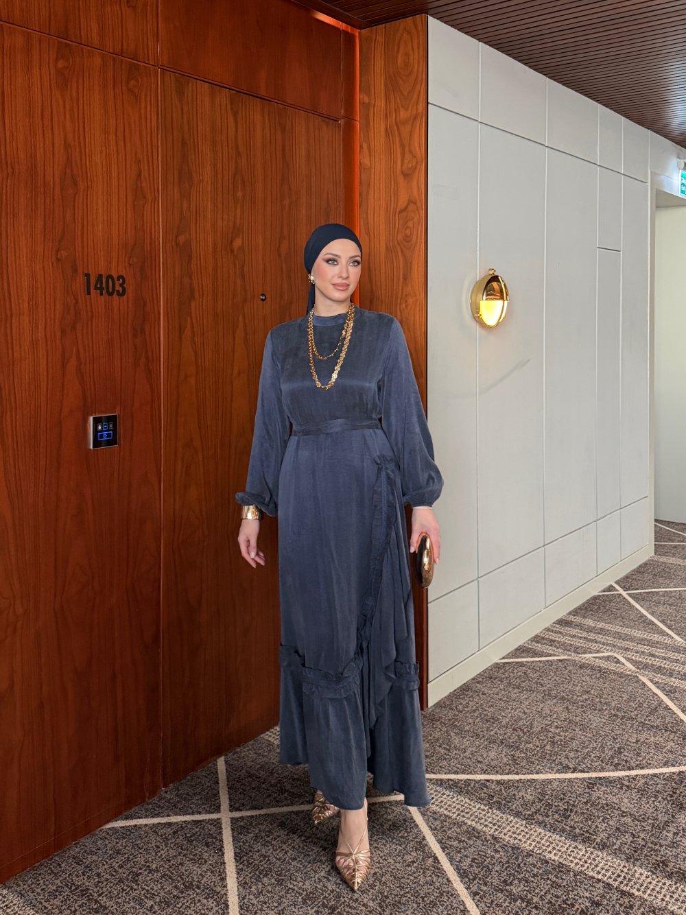 Elbise Etek Ucu Asimetrik Fırfır Detaylıdır.