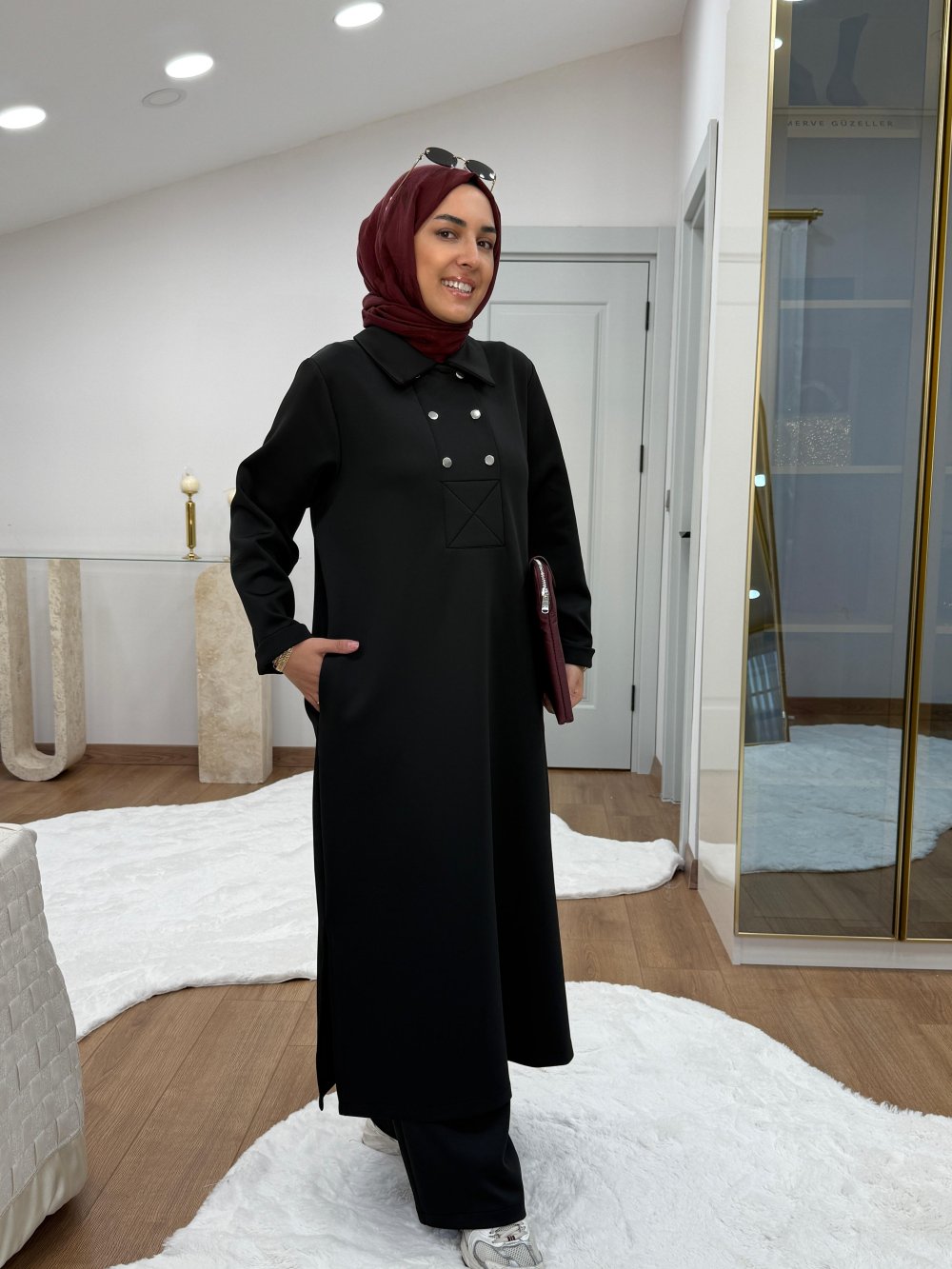 Çıtçıtlı Detaylı Maksi Boy Scuba Takım Siyah