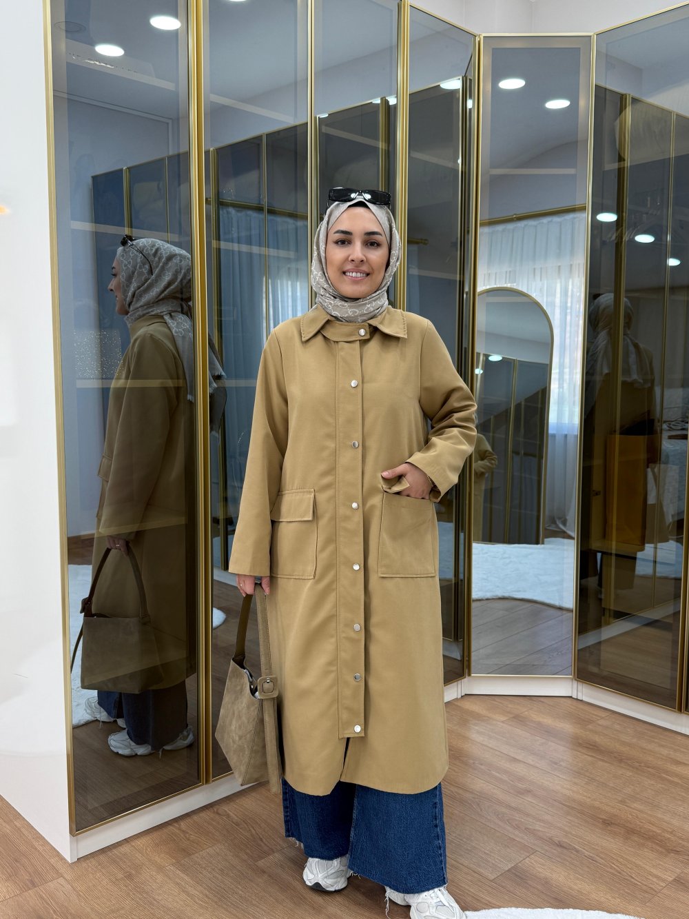 Çıtçıtlı Detaylı Parka Trençkot Camel