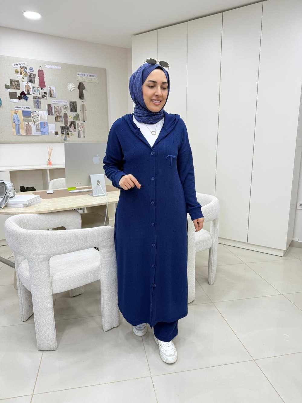 Kap boy 120 cm’dir. Yanlarda cepleri bulunmaktadır.