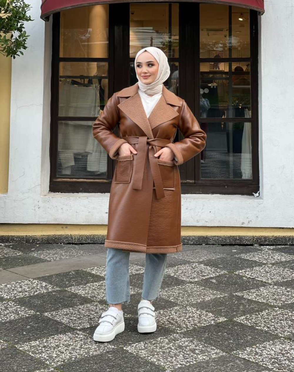 Dışı suni deri , içi yün kumaş