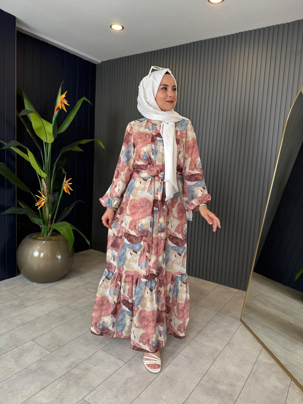Desenli Keten Elbise ?✨