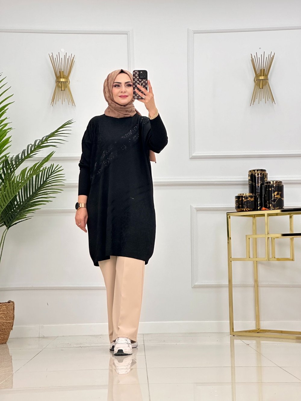 DİLAN TAŞLI TUNİK-SİYAH Siyah