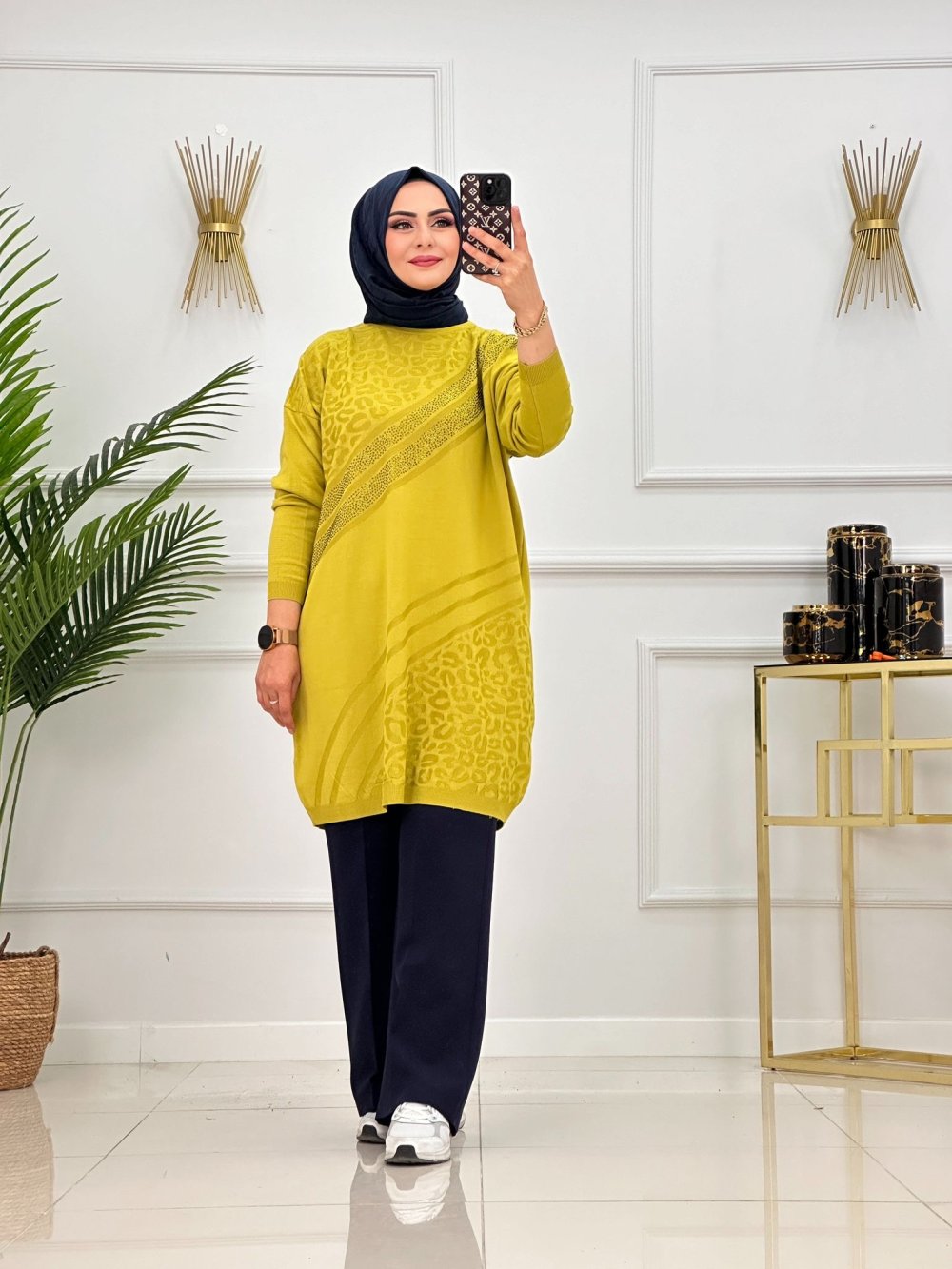DİLAN TAŞLI TUNİK-YAĞ YEŞİLİ Yağ Yeşili