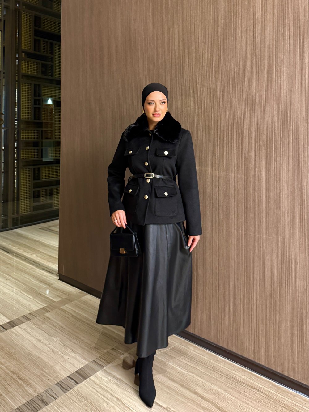 Kaban Yakası Çıkarılabilir Kürk Detaylıdır.