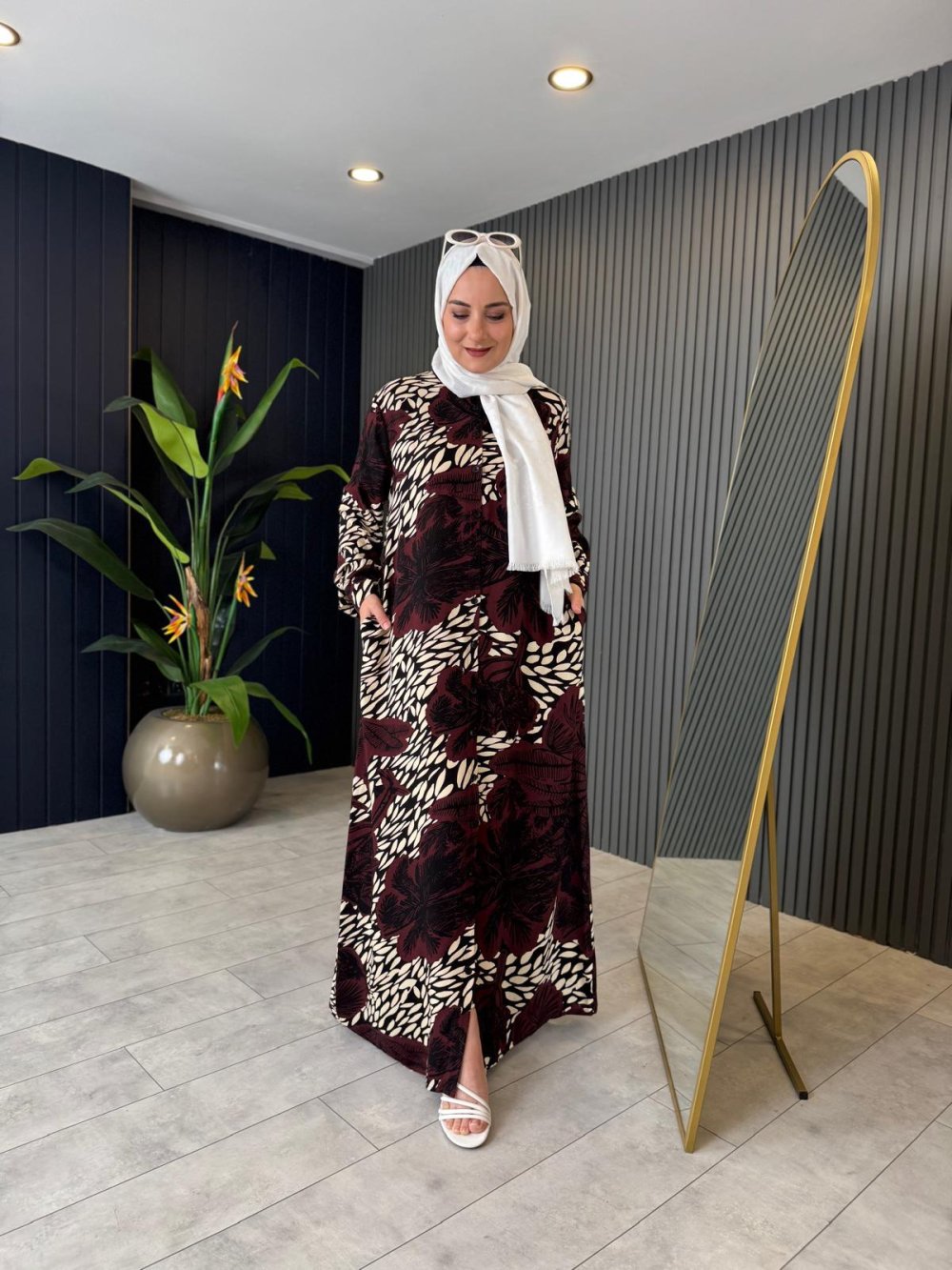 Dubai Viskon Desenli Elbise ?