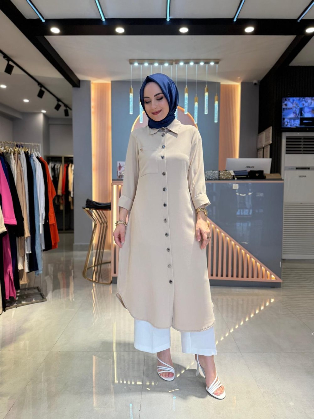 Düğme Detay Cepli Tunik