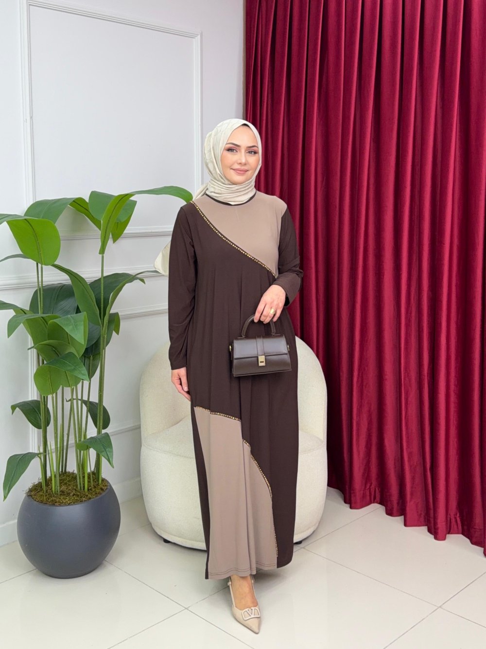 EKİN SANDY ELBİSE - KAHVERENGİ Ekose Kahve