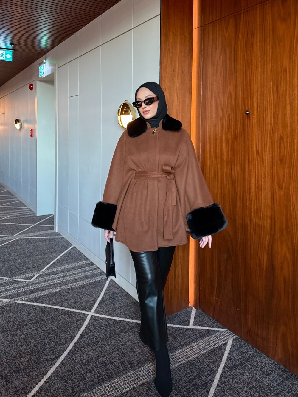 KabanınYakası ve Kolları Kürk Detaylıdır.