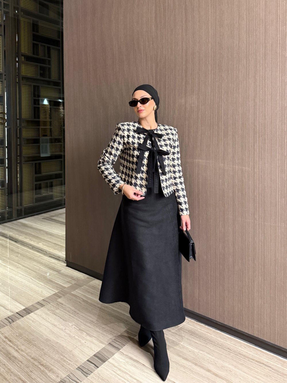 Takım Ceket Kapitone Kumaştır. Etek Süet Kumaştır.