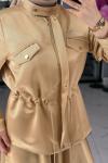 Modal Kumaştır. Sahte Cep Kapaklı, Tünel Büzgü Kuşak Detaylı,Kloş Etek