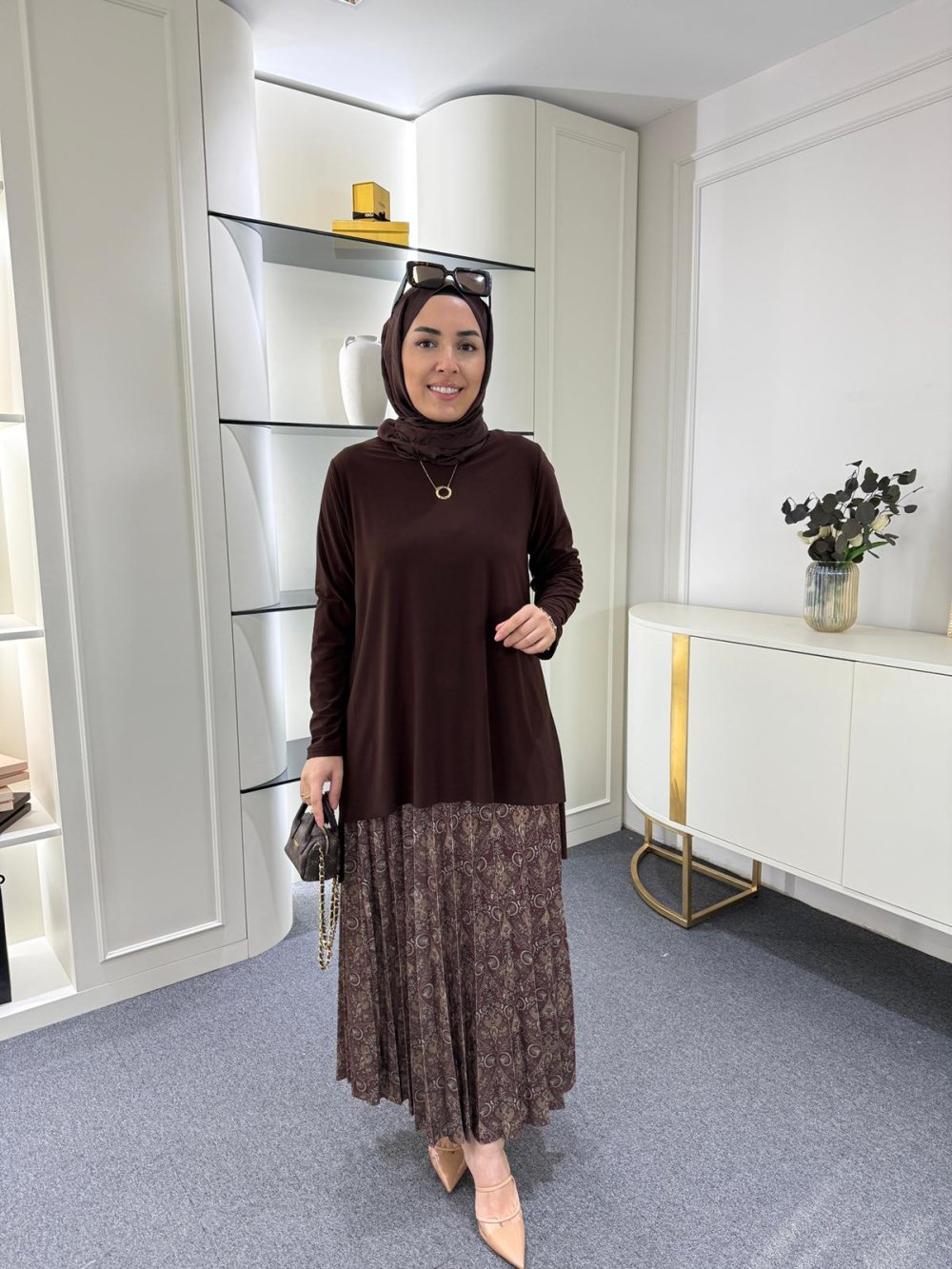Etnik Desen Tilda Etekli Takım Kahverengi