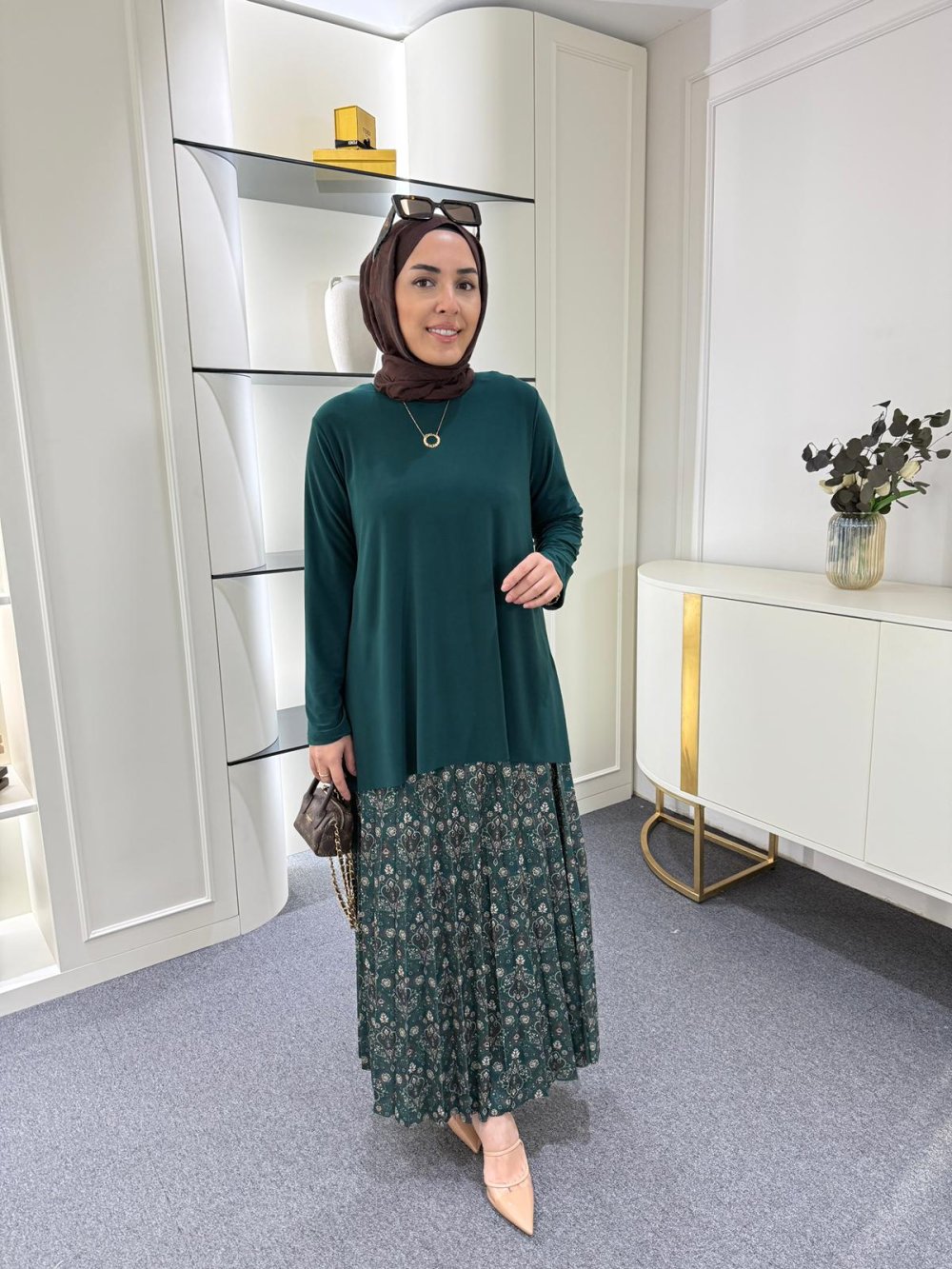 Etnik Desen Tilda Etekli Takım Zümrüt