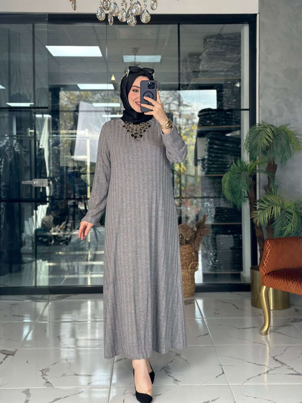 Kumaşı likralı örme kumaştır. Önündeki düğmeler süstür.
