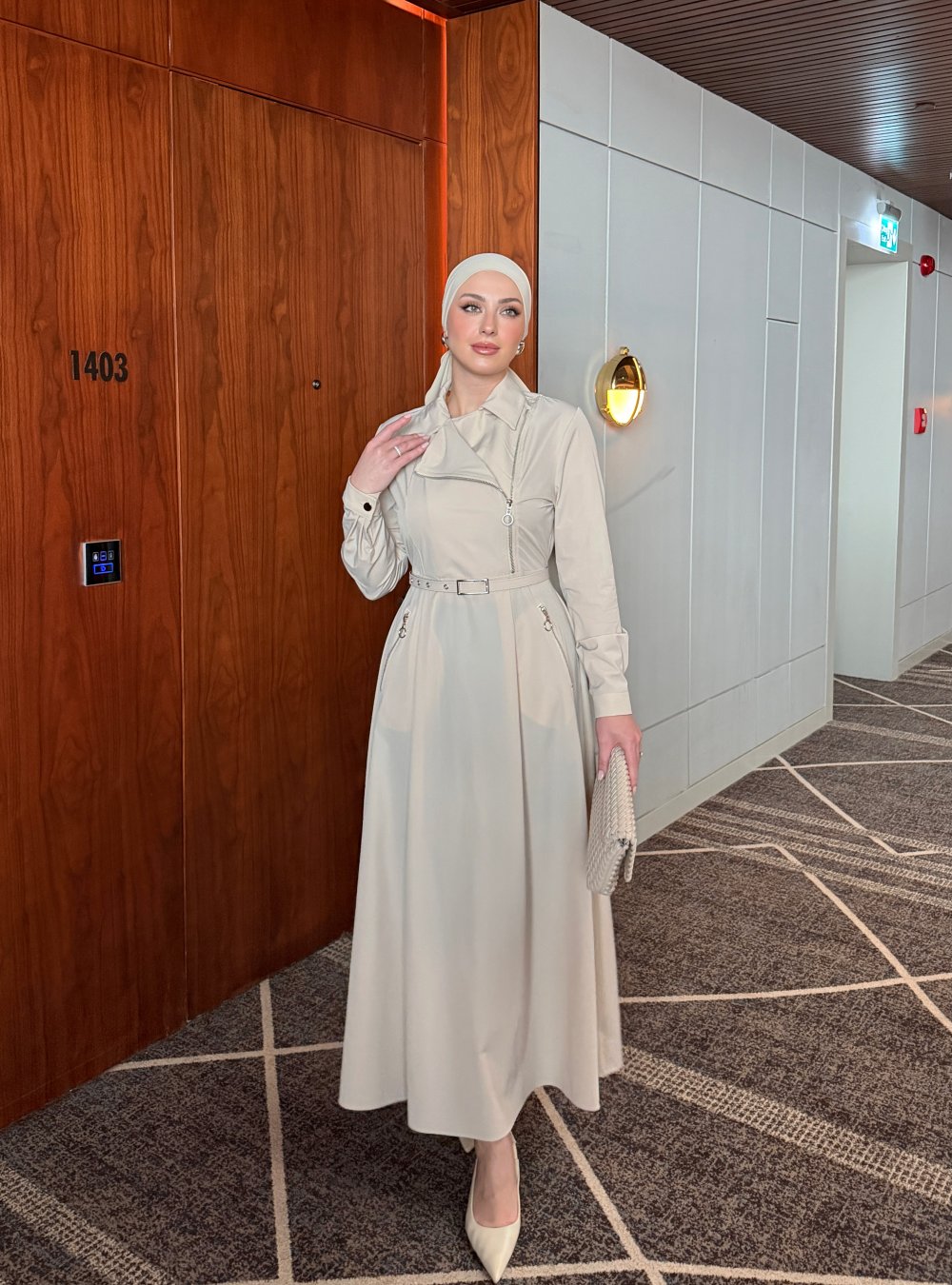 Elbise Yandan Yarıya Kadar Fermuarlıdır.
