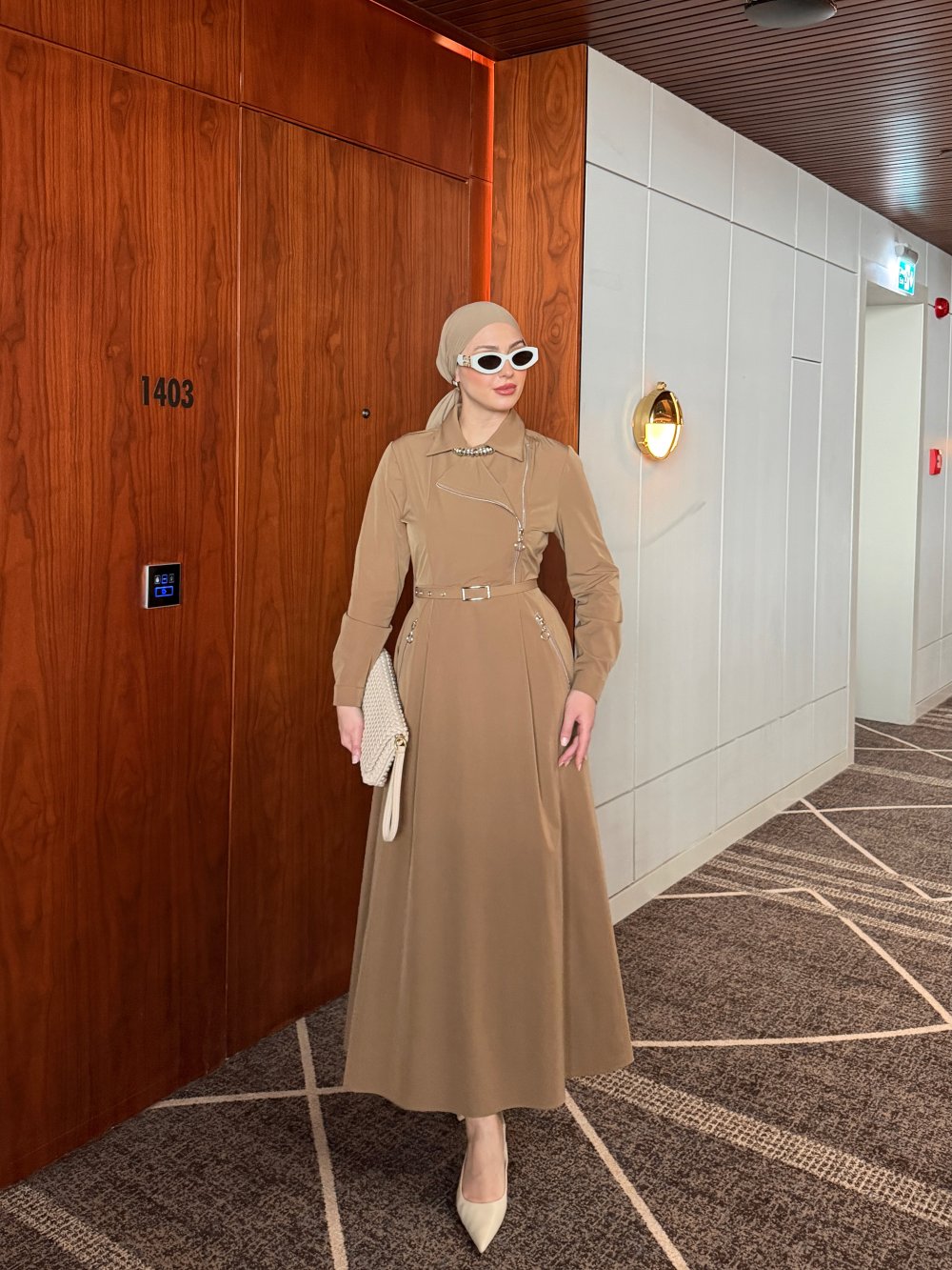 Elbise Yandan Yarıya Kadar Fermuarlıdır.