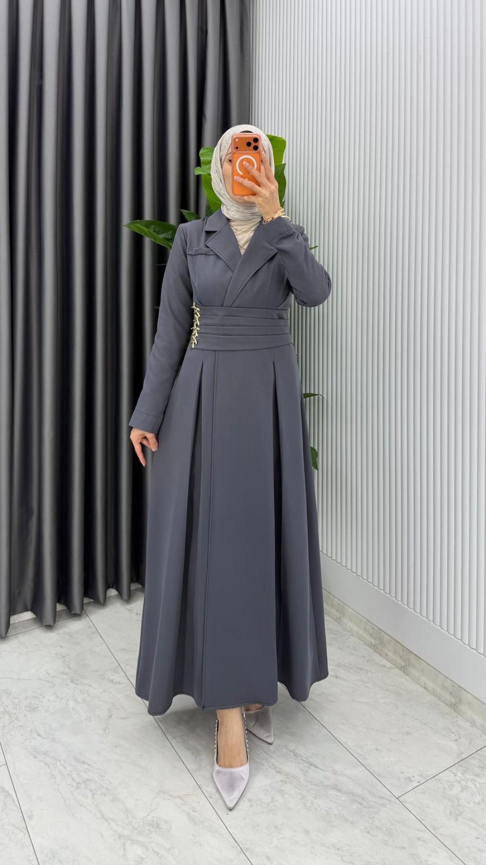 Füme Premium Hülya Ferace Elbise Tesettür Giyim